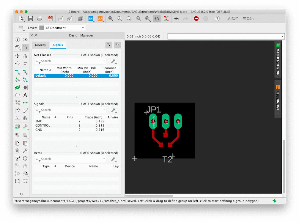 As I confirmed the movement of the Biometal, I designed the board using Fab inventory.