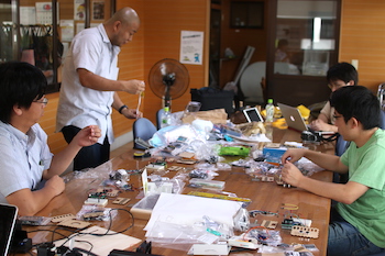 One is to count how many people coming (visiting) to their art event (hold in every August) by using Ultra sonic sensor. I made five sensor devices with the staffs and put them in front of their artworks. And, visualizing how many people visiting in 5 places everyday.