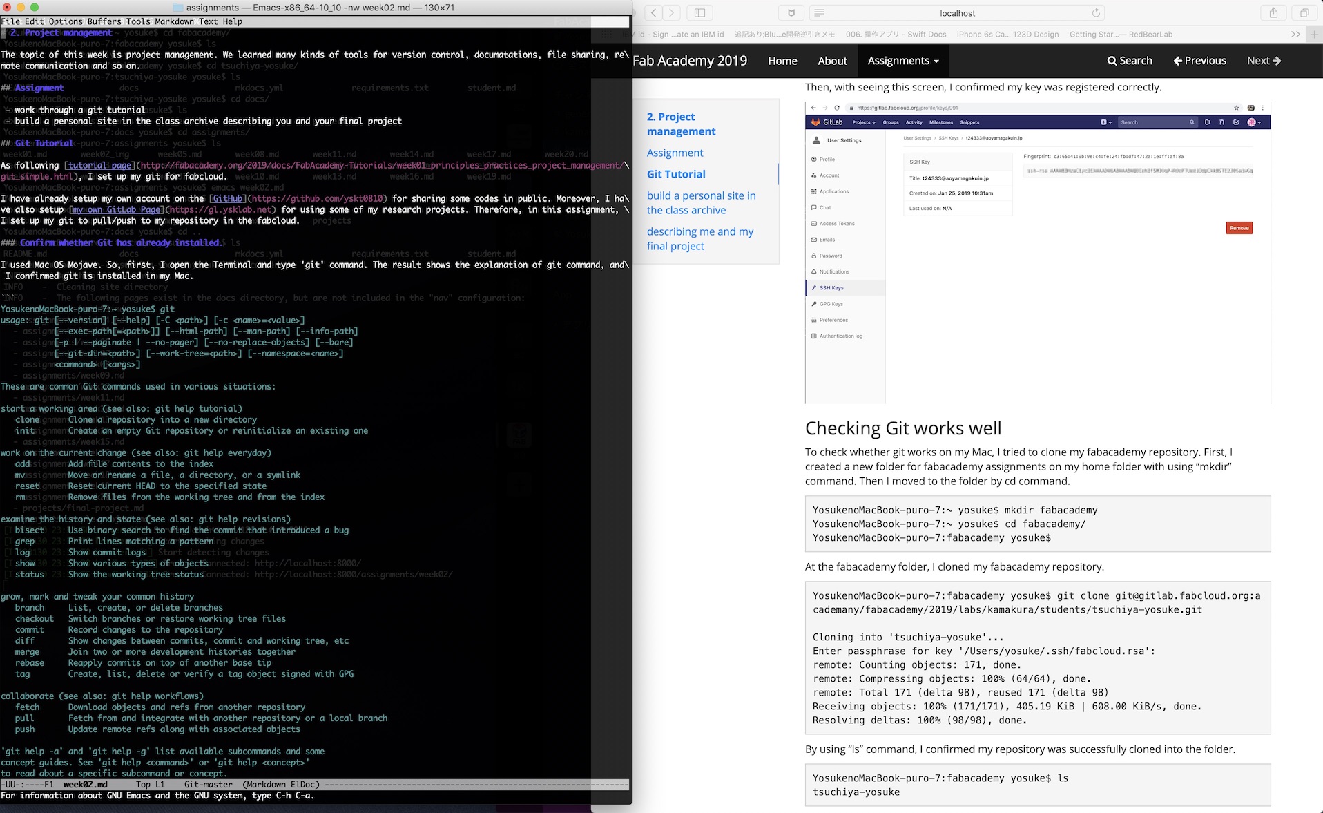 $ git clone git@gitlab.fabcloud.org:academany/fabacademy/2019/labs/kamakura/students/tsuchiya-yosuke.git Cloning into 'tsuchiya-yosuke'... Enter passphrase for key '/Users/yosuke/.ssh/fabcloud.rsa': remote: Counting objects: 171, done. remote: Compressing objects: 100% (64/64), done. remote: Total 171 (delta 98), reused 171 (delta 98) Receiving objects: 100% (171/171), 405.19 KiB | 608.00 KiB/s, done. Resolving deltas: 100% (98/98), done.