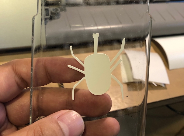 After finished cutting, I peeled off the seal, and pasted it to the smartphone case by using carbon paper.