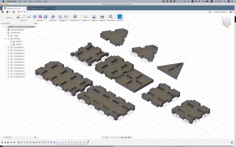 After sketeched some patterns of module, I did “extrude” each shapes and make those components.