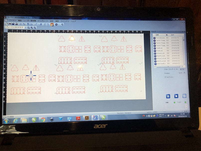 I imported above DXF files into the PC that are connected to lab’s laser cutteing machine (Trotec Speedy 100). Then, I set the power = 85 and speed = 1.2, find out as optimal parameters in our group assignment.