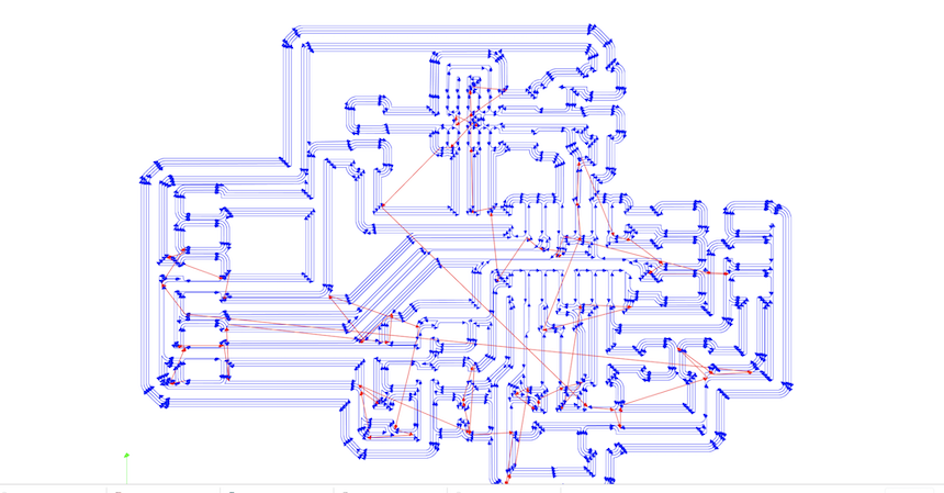 Here is the view of the path for milling by Roland SRM-20. From the experience of week 7 (Electronics Design) assignment, I checked the path carefully before moving to milling part. That looks fine (no pathes that are not overlapped.)
