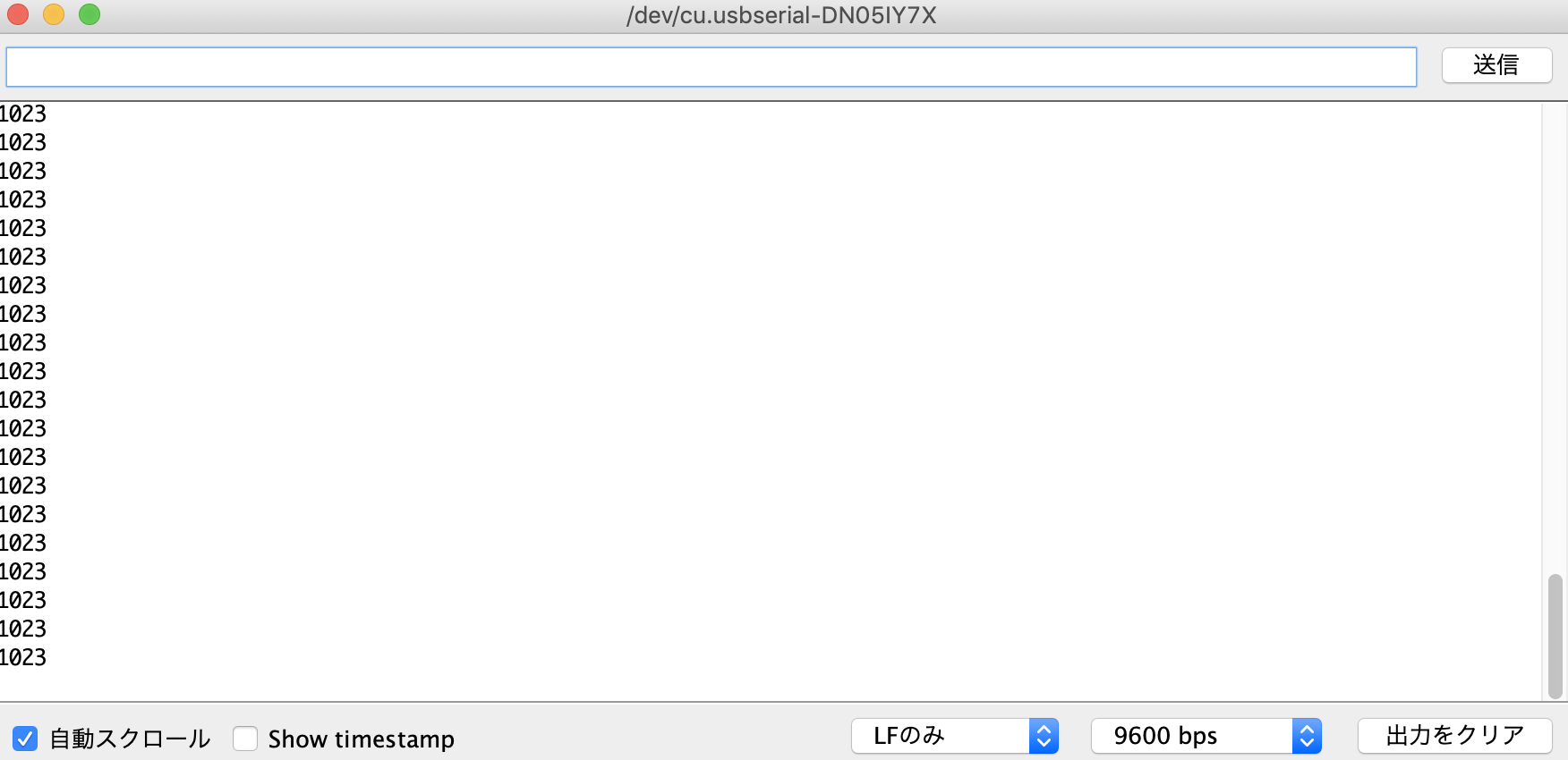 Then, uploaded the sketch to the board, and opened the “serial plotter”, that show values of analogReaded data on the line chart. That works well.