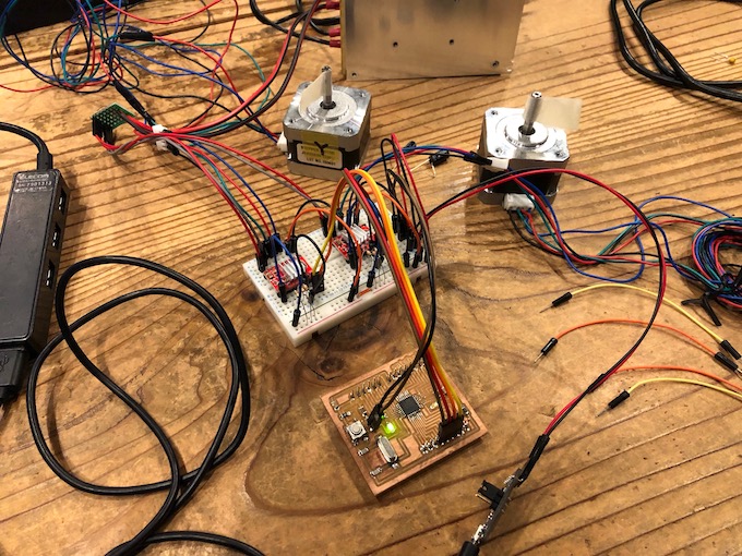 We connected satshakit and our motor drivers breadboard to Core XY machine that 2018 Kamakura students group made. Then, I downloaded Arduino Source Code to control Core XY machine from here.