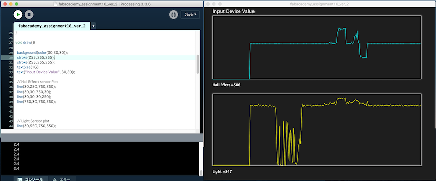 In the assignment of Input Devices Week, I made an input device that are equipped hall effect and photo transistor.