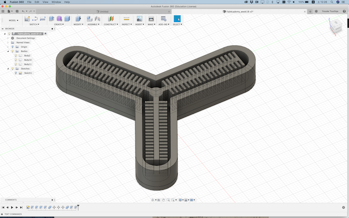 The class in this week is “wildcard week”. Students should research fabrication process as they concern and try it. In the class, there are a couple of recent new and interesting fabrication processes are introduced such as biotechnology (bioacademy), textile (fabricademy), composites, robotics, folding and cooking. The class video is here.