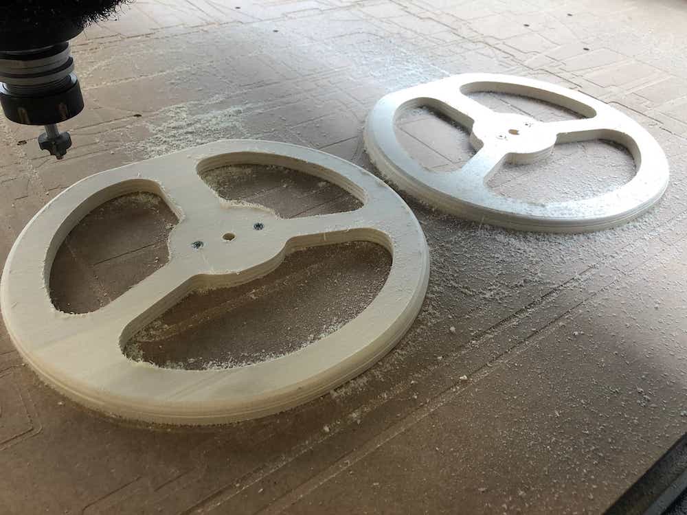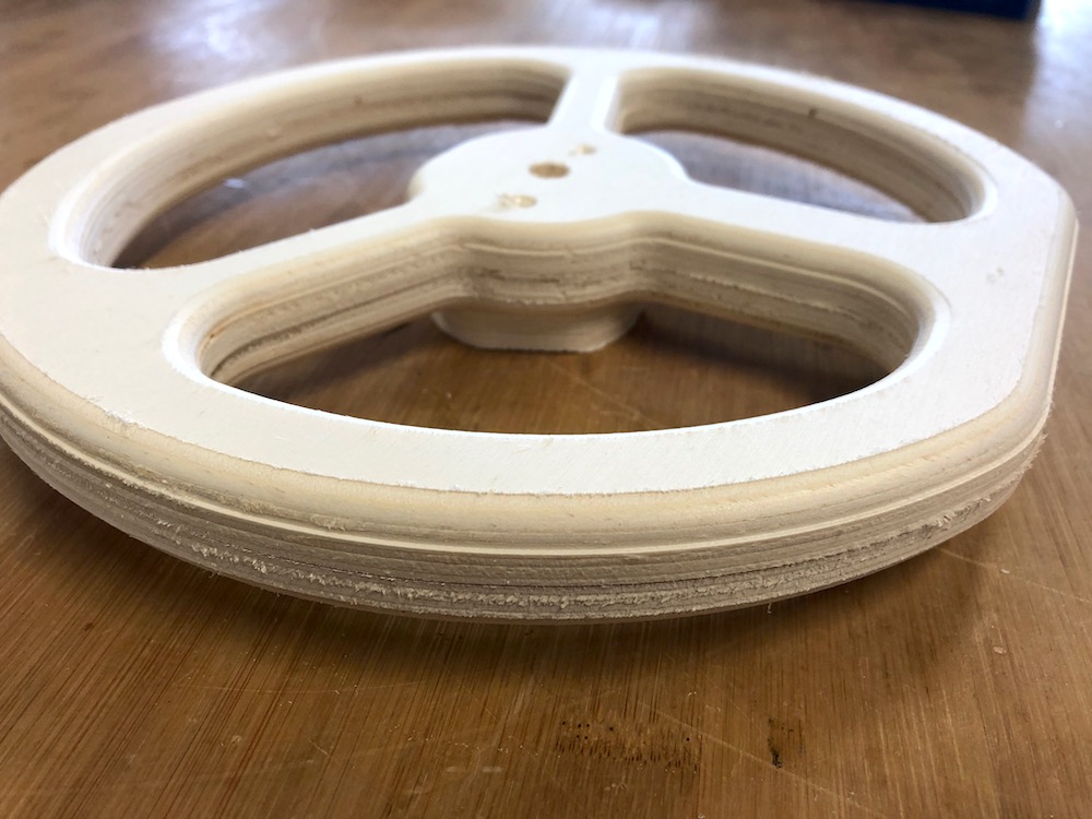 To cut the jute I decided to use the Epilog Zing Laser Cutter to get a perfekt cut out of the steering wheel. The idea is to sandwich the jute between the two parts of poplar plywood and then add the matrix to secure the materials. I had to experiment a bit to get the right vektor settings. The settings I used are: