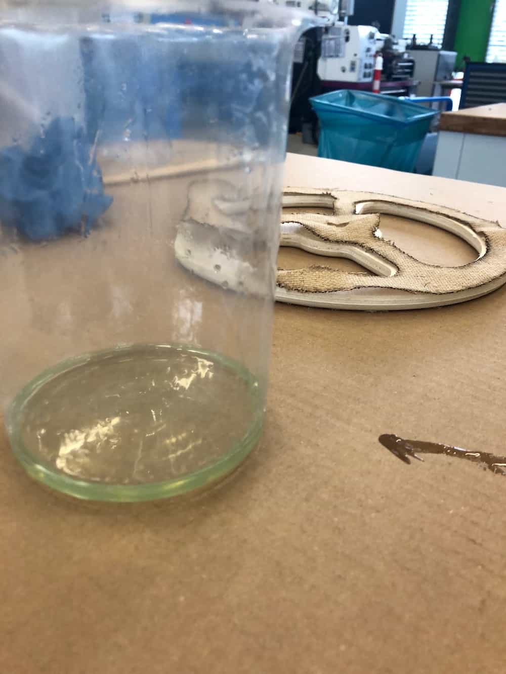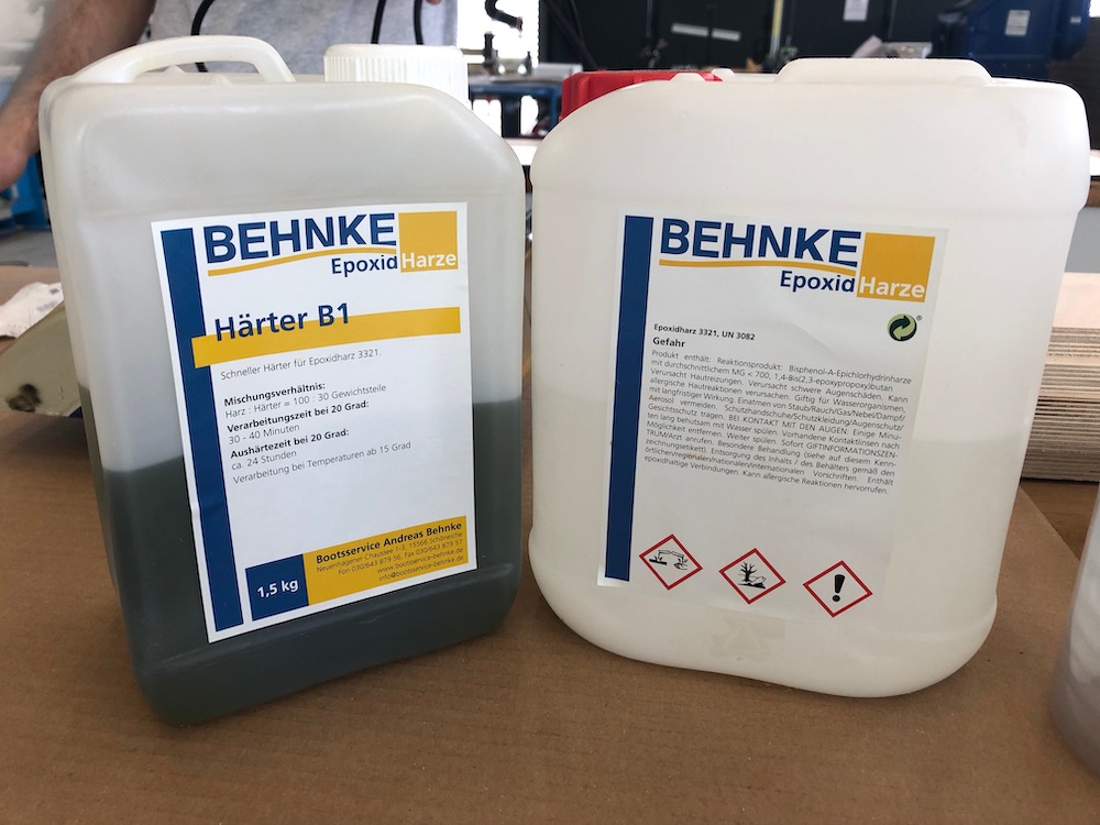 As Matrix to create the composite I used epoxy resin because of its reactivity that enables it to bond well to fibres. Due to its particularly low viscosity, the reinforcing fibres can be impregnated very easily, quickly and completely. Processing in injection processes and under vacuum is also possible. In the FabLab we have Epoxy Resin 3321. With the hardeners B1 and B2, a processing time of 0.5 to 2 hours can be achieved. In addition epoxy resin 3321 cures at room temperature. The mixing ratio by weight is: 100 Epoxy resin 3221 to 30 of hardner B1/B2.
