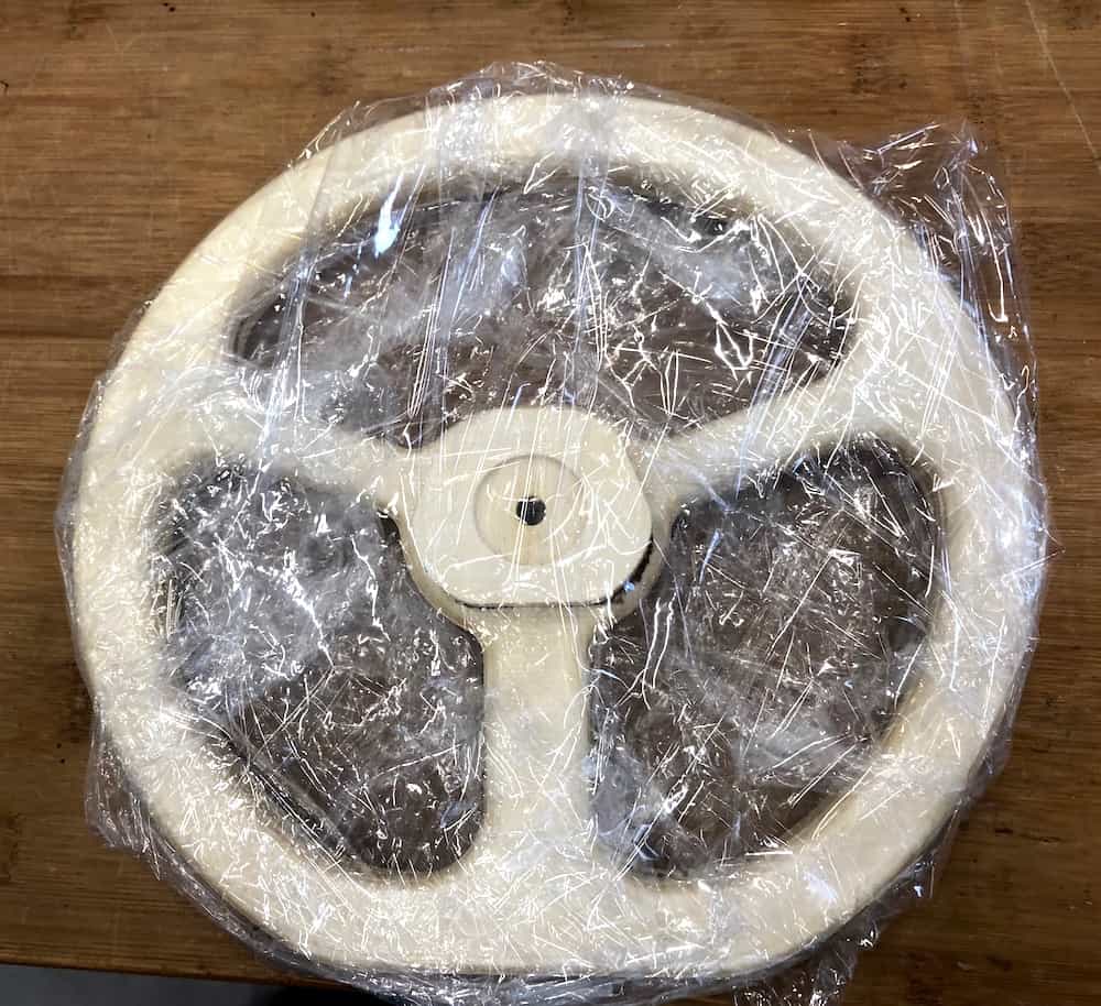 Next I wrapped the composite in cling film. In this way it prevents the epoxy from flowing out of the composite while its under vacuum. The cling film is also really easy to remove and does not react with the epoxy resin.