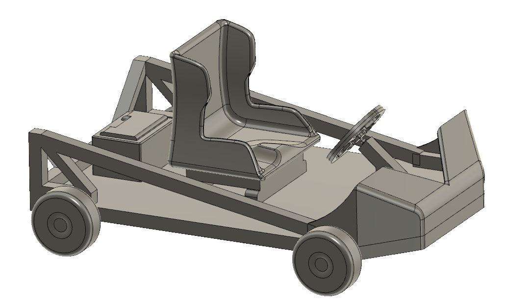 As final project I want to build a electric Go Kart with front-wheel drive. The Idea is to create a very light frame, to achieve more speed. The steering is going to be automatic. To do this we are going to attach a potentiometer to the rod of the steering and calibrate the values for the motor. As soon as you turn left the left front wheel is going to rotate slower then the right one.