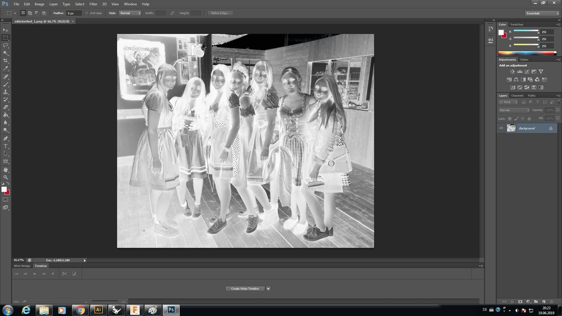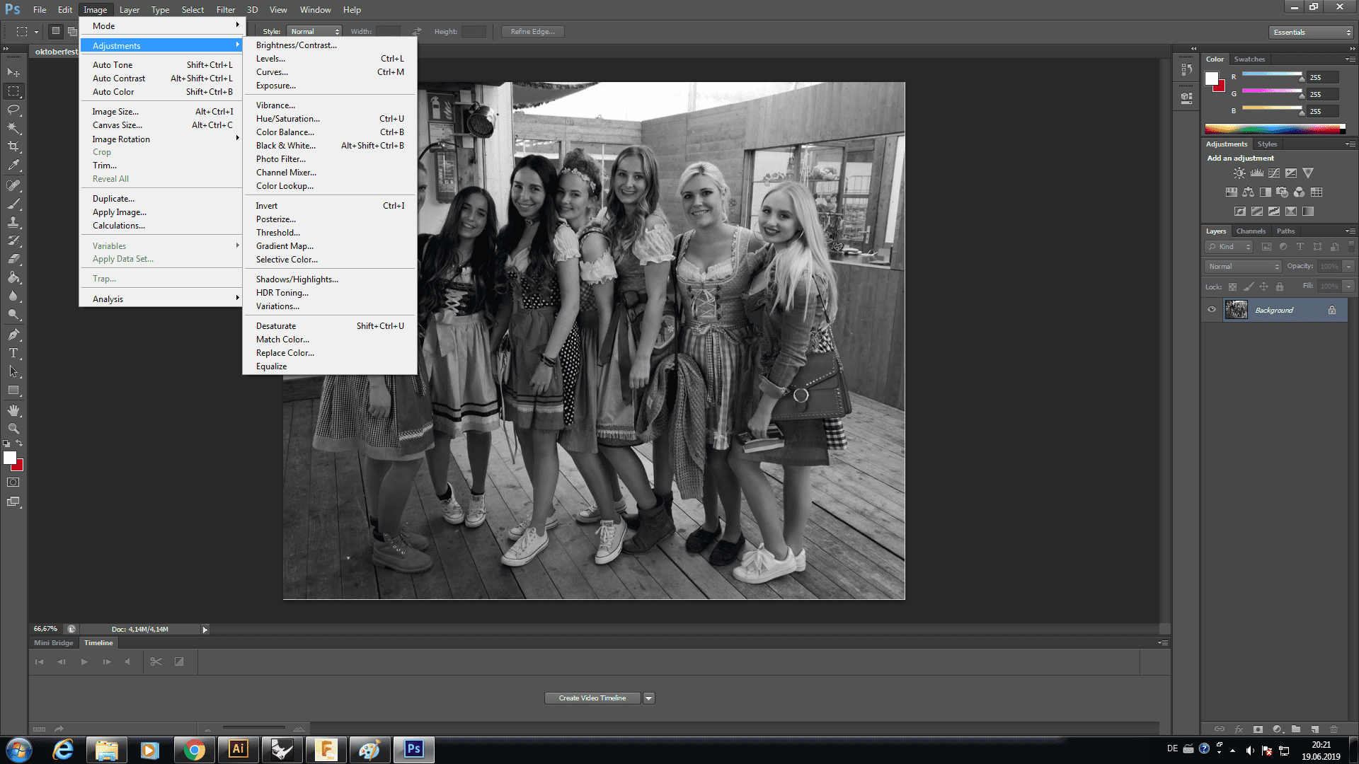 Adobe Photoshop is a raster graphics editor for use on Windows or MaOS. Photoshop offers users the ability to create, enhance, or otherwise edit images, artwork, and illustrations. I use it to edit photos. For instance the picuture underneath was way to dark and I had to modify it to be able to engrave it into plexiglass. Otherwise you woudn't have seen the diffenernce between us and the background. I changes the lighting in the left and right corner.