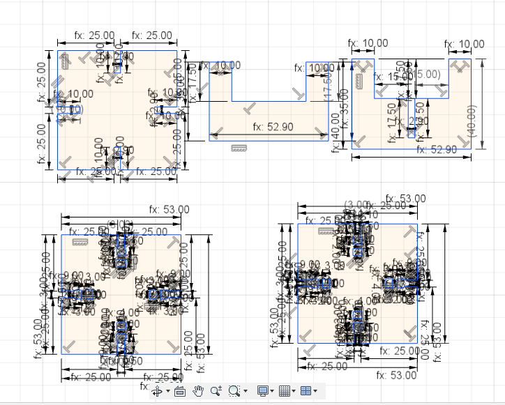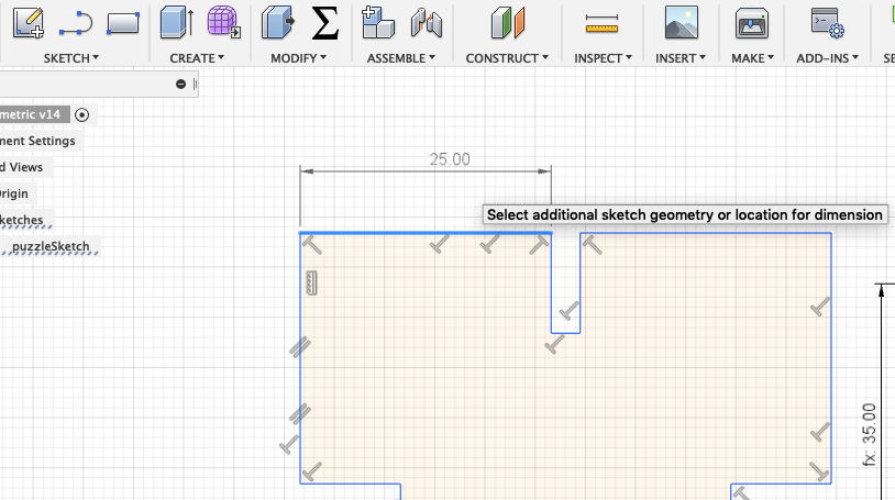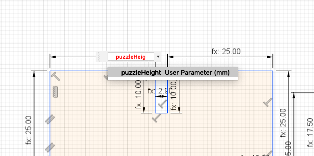First of all I started designing a simple press-fit construction to learn how to create a parametric sketch. I used the line tool to create this simple design.