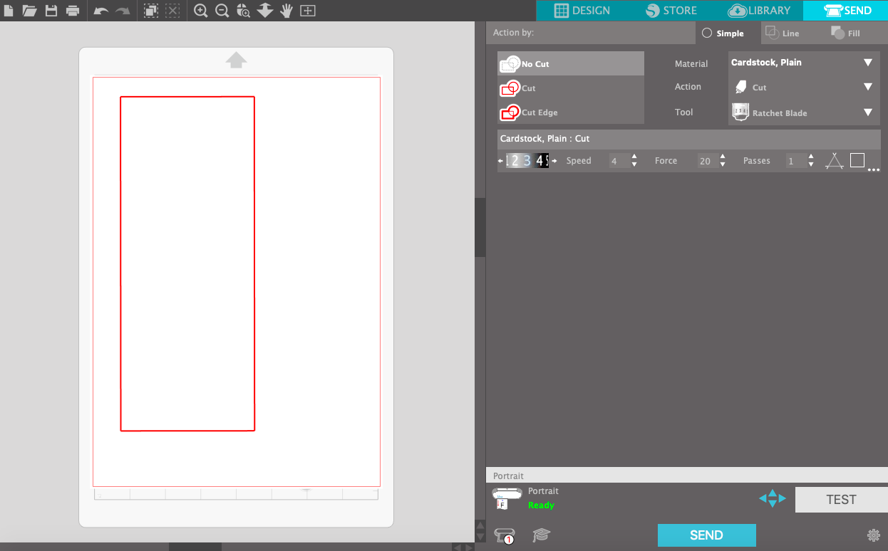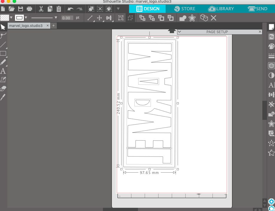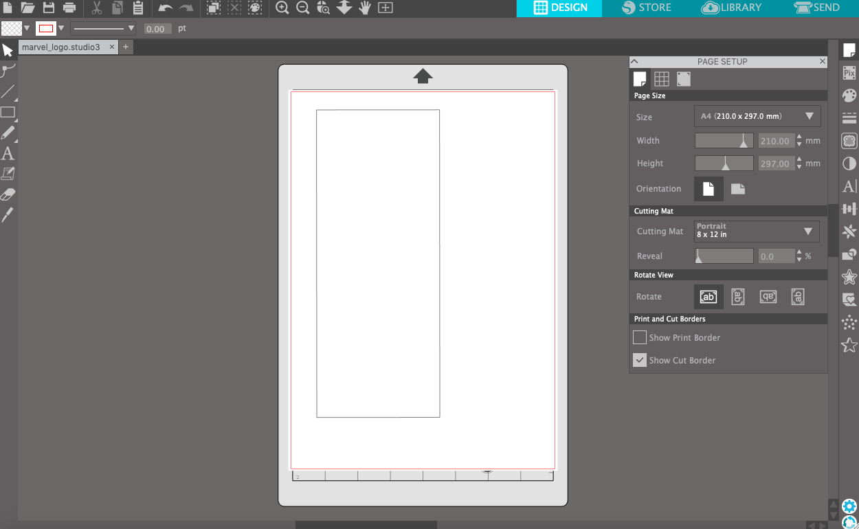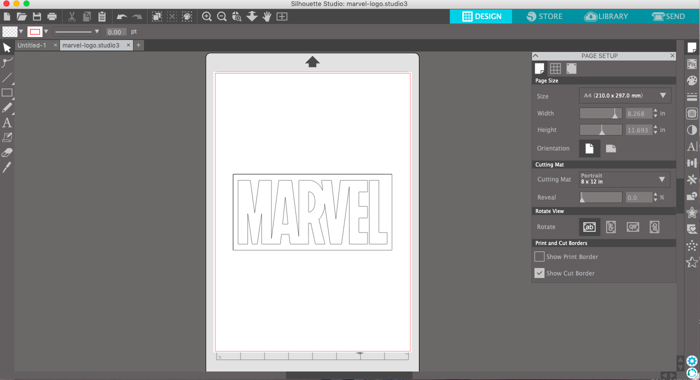 The Marvel logo has a red background with white letters. So I first start to cut the background and remove the letters. Before you send the job always be certain that you selected the proper vinyl cutter mat. In this case the portrait mat. I also like to set the Size of the mat, cause then you will have a realistic output of the position of your design.