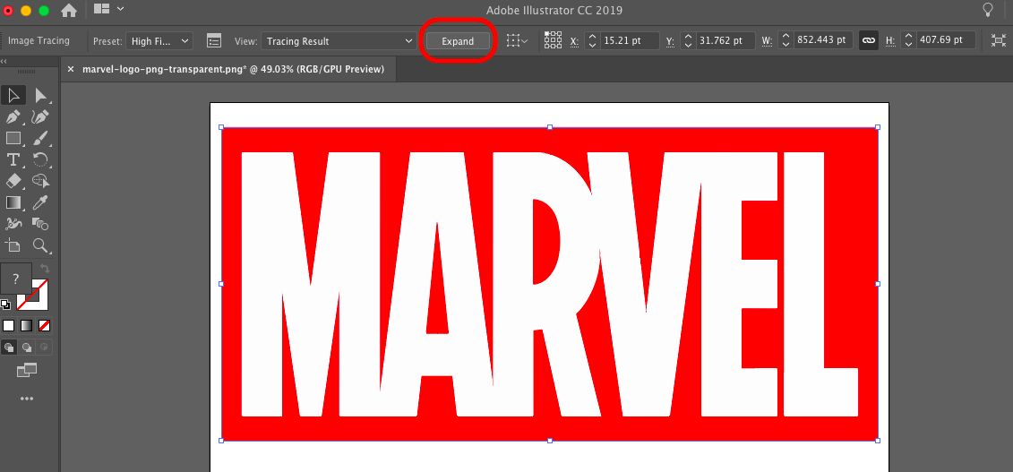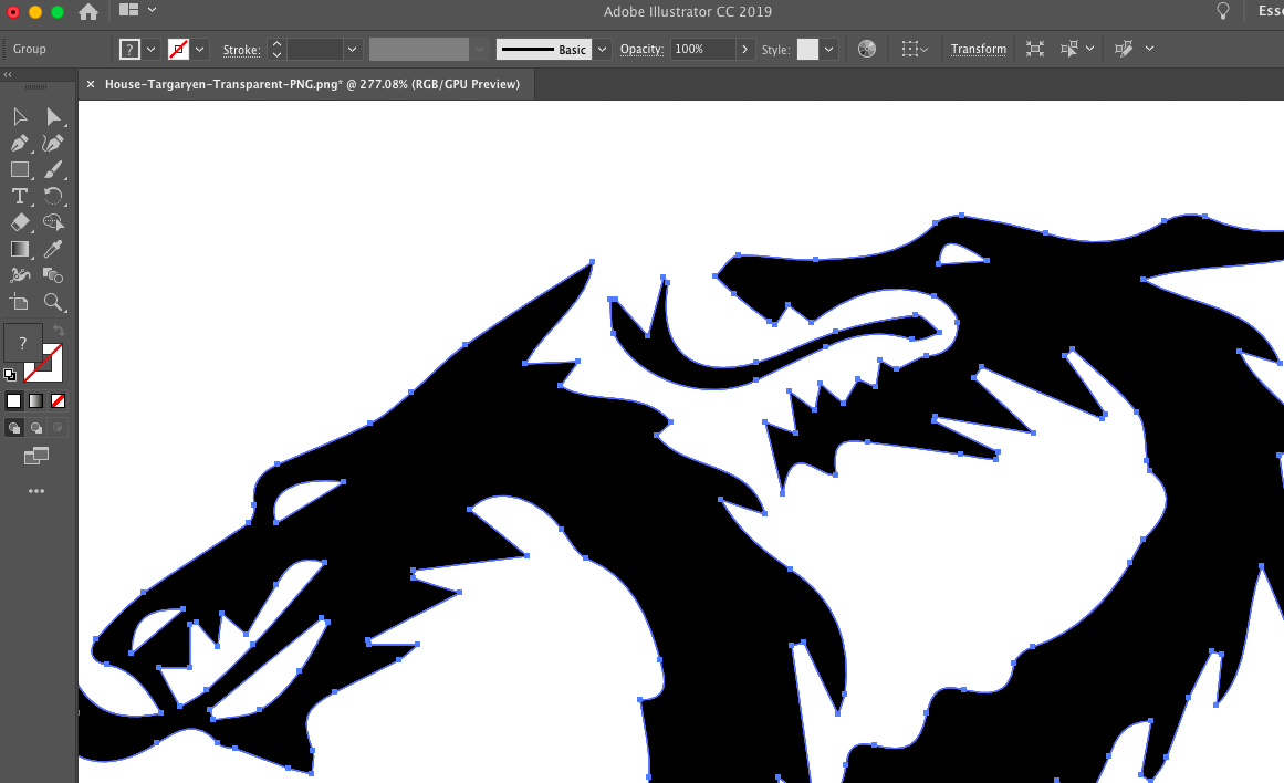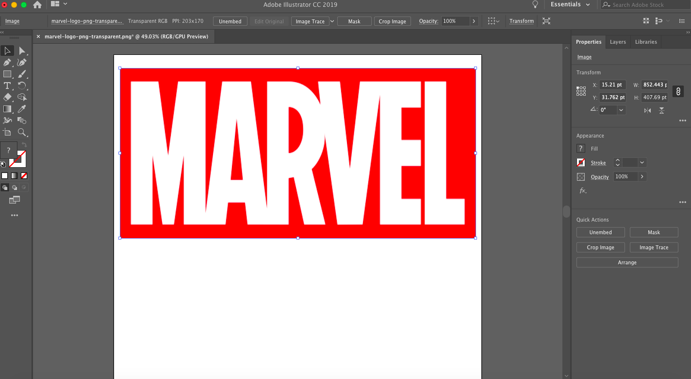 As I am a total Marvel and Game of Thrones fan, I wanted to make a Marvel shirt and a GOT bag. To achieve this, I had to vectorize the PNG-files. To do this I used Adobe Illustrator. This is a very simple and easy procedure. First you have to import the image into Adobe Illustrator.