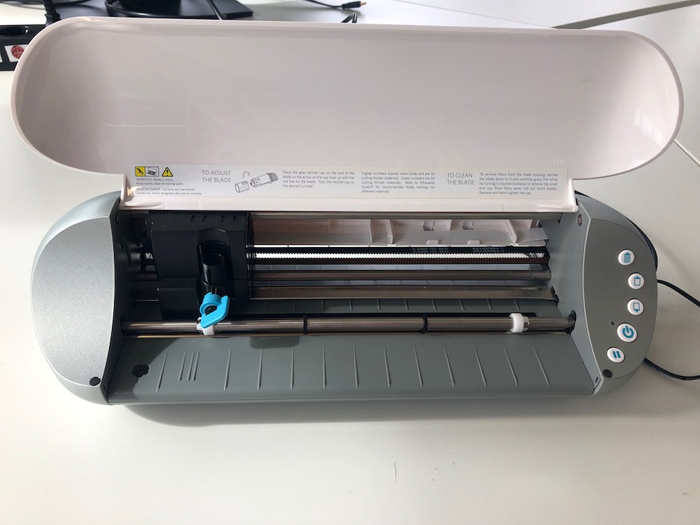 When you open the flap of the vinyl cutter, you will see that it basically looks like a normal printer. Only that it uses a blade instead of ink.