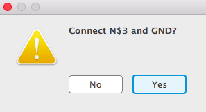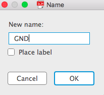 As soon as you select the label tool a new window appears. The name that you set in here, will be the component with wich you want to connect it. I wanted to connect the GND pin header with the GND output on the microcontroller.