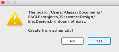 Once the schematic is completed, you can generate the board layout. To do this click on the Generate/Switch to board button in the top menu. This converts the schematic into a physical board layout. Furthermore make sure that the new board layout file shows all the components you created in your schematic.