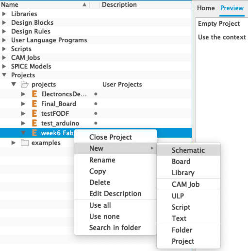 Before you start with the design you have to create a new project in Eagle. Just make a right click under Projects and select New Project.