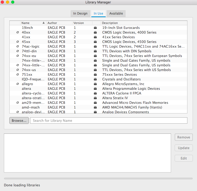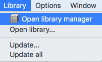 Eagle comes with a large library of components you can use in your design. But not all the components I needed for my design were incorporated, so you might have to add an extern library. You can do this by going to Library on the top menu and then open the Library Manager.