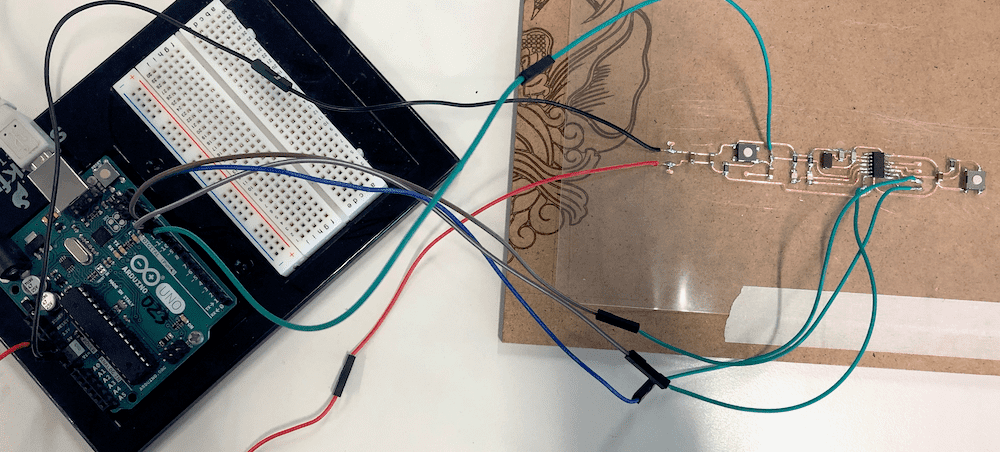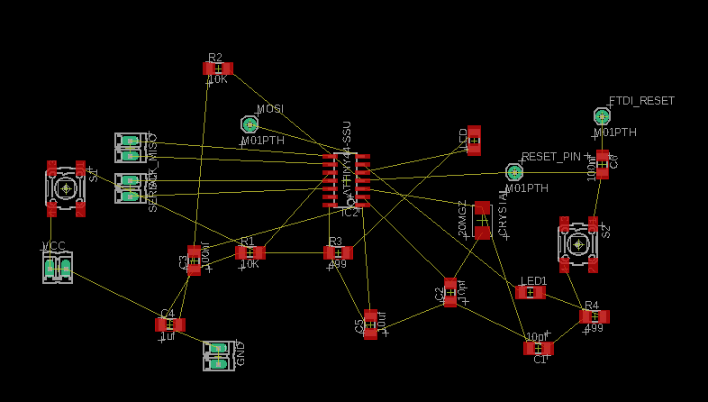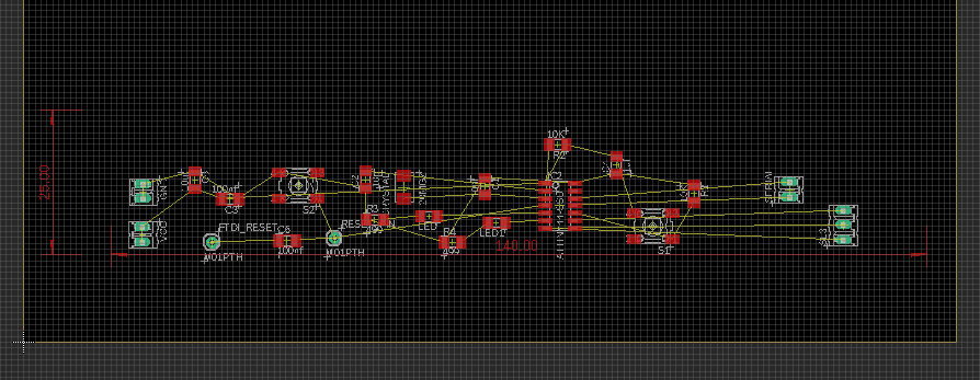 For this week's assignment, the task was to redraw the echo hello-world board and add (at least) a button and LED. To create the design I used Autodesk Eagle. Moreover I used Fab Modules to generate the G-Code for the machine, as I did in the Electronics Production week. At last we had to program the board using an Arduino Uno Board and the Arduino IDE Software or the FabISP.