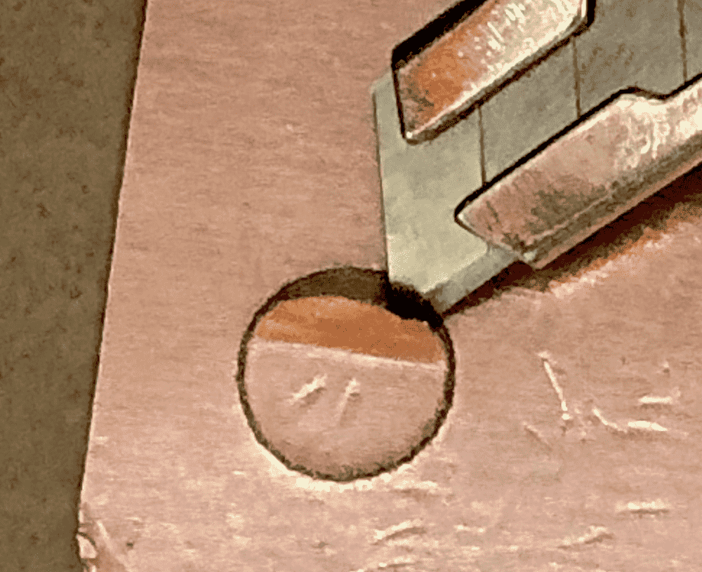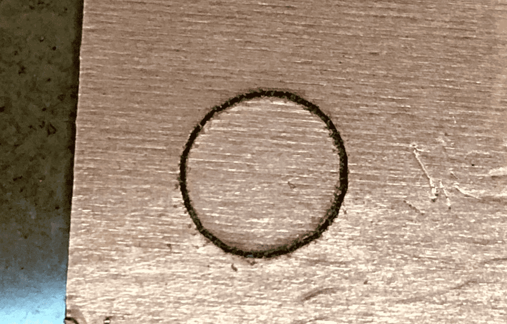 Before I started to mill the board, I had to test the idea, since no one has used this technique before. I decided to use this technique, because the CNC Machine very percise compared to the vinyl plotter. So I drew a circle using Gimp and then generated the G-Code with Fab Modules.