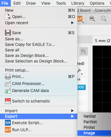 Next, you have to prepare the file for the machine. To do this you have to export the board as an PNG file. Remove all unnecessary details by going to View --> Layer settings....