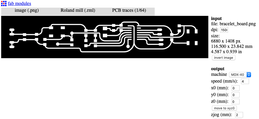To prepare the G-Code I used the Fab Modules software, as I did in the Electronics Production week. There you can read more about how to use the software.