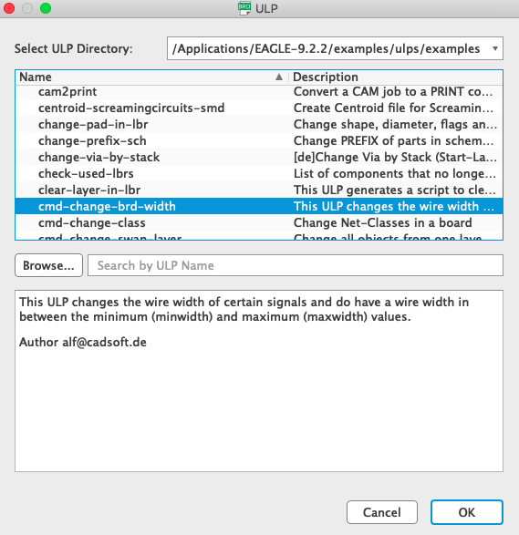 To to this I had to open the Run ULP window by going to File --> Run ULP.