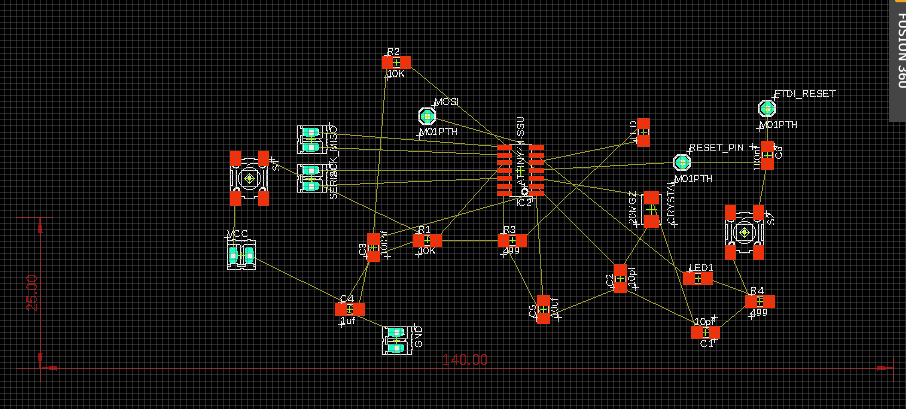 After placing the microcontroller I started to draw the connections. To do this select the Net tool in the toolbar.