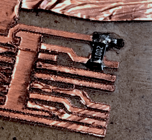 Before I started soldering I had to remove the copper arround the traces, which could be easily removed.