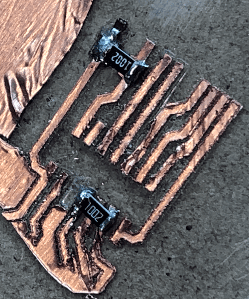 • 4 x resistor 1206: two to regulate the voltage between the LEDs, one for the button and one for the RESET.