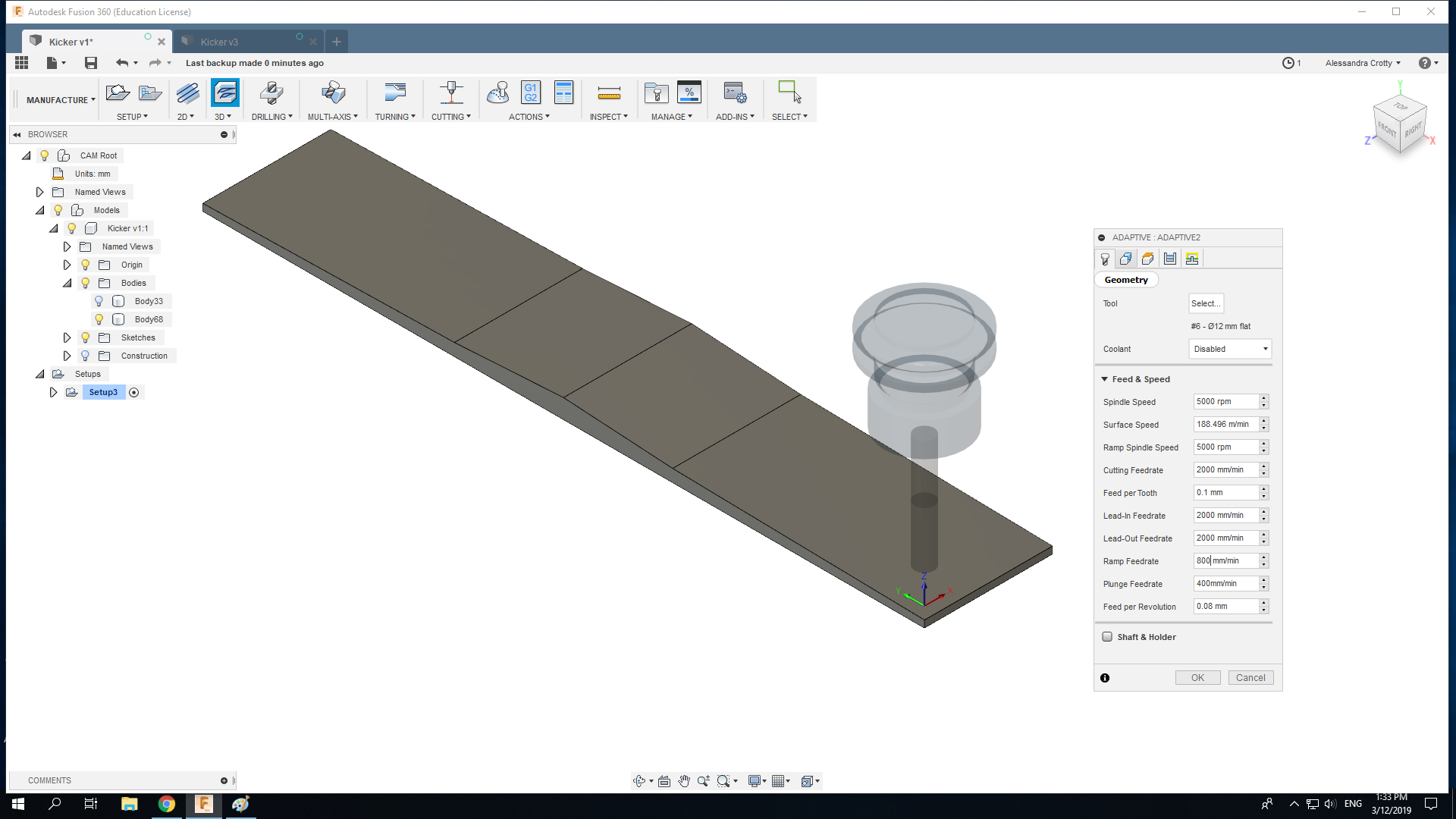 To make the ball roll as soon as someone scored, I had to mill a slide. To mill in 3D you have to change into the CAM processor mode, which generates the GCode for you.