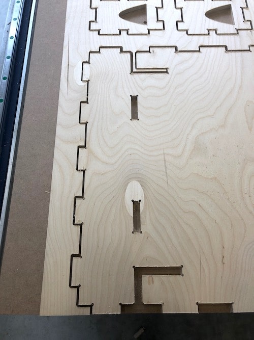 The settings used to cut the foosball table for the 12 mm plywood are: