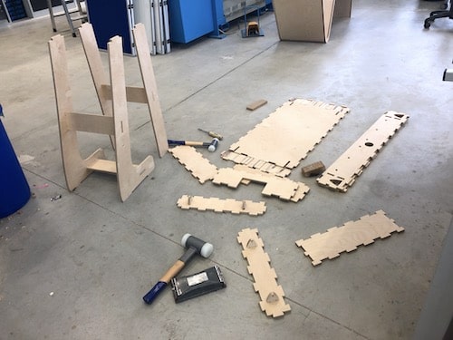 In addition, the goal was to realize a press construction, so that I also had to include joints in my design. Moreover I chose to use multiplex because it is a very strong material. The material thickness will be 12mm. I measured it beforehand to make sure I didn't have any tolerance and it was as the manufacturer said 12mm.