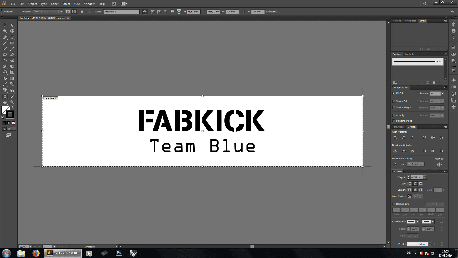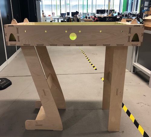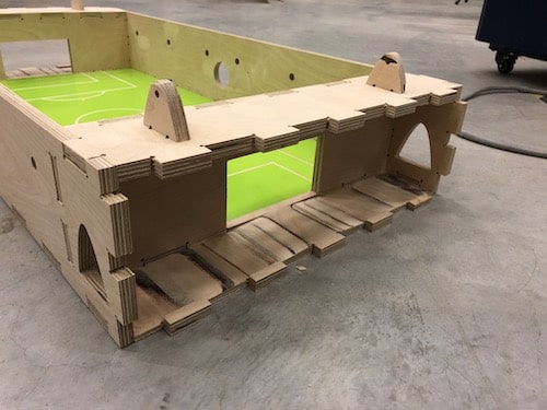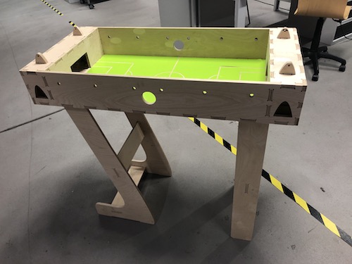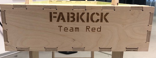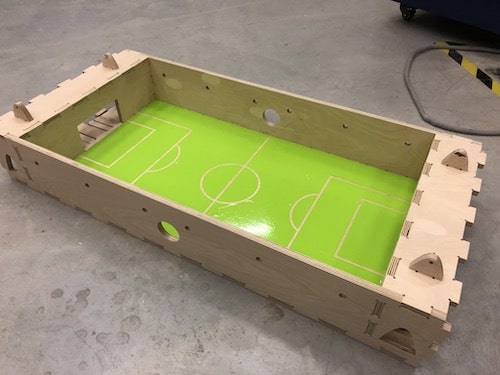 Moreover I used the Laser Cutter to engrave "FABKICK" and "Team Red", "Team Blue" on the sides of the foosballtable. To get a full introduction on how to use the Laser Cutter go to the Computer Controlled Cutting week.