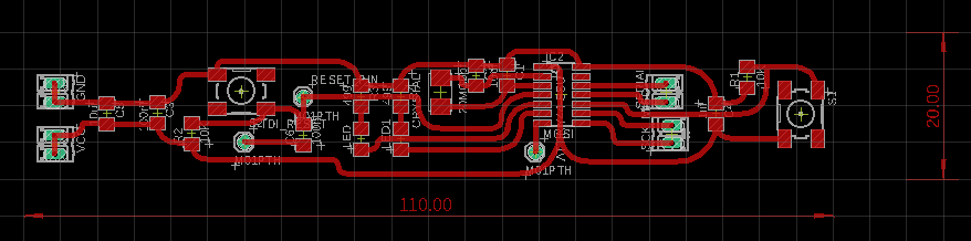 Arduino code is written in C++ which is a human-readable programming language. In the Electronics Design week I already made my own flexible pcb, which I will use to accomplish this week's task. This pcb has two buttons (input) and two leds (output).
