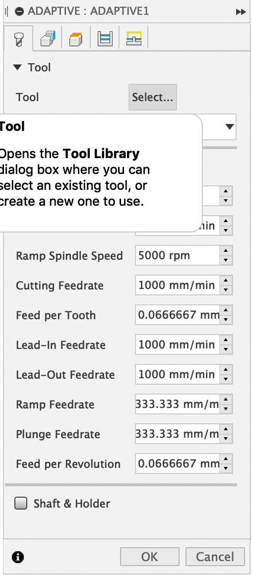 Ramp Feedrate: The speed of the spindle, when doing a helical ramp into the stock, didn't changed this parameter