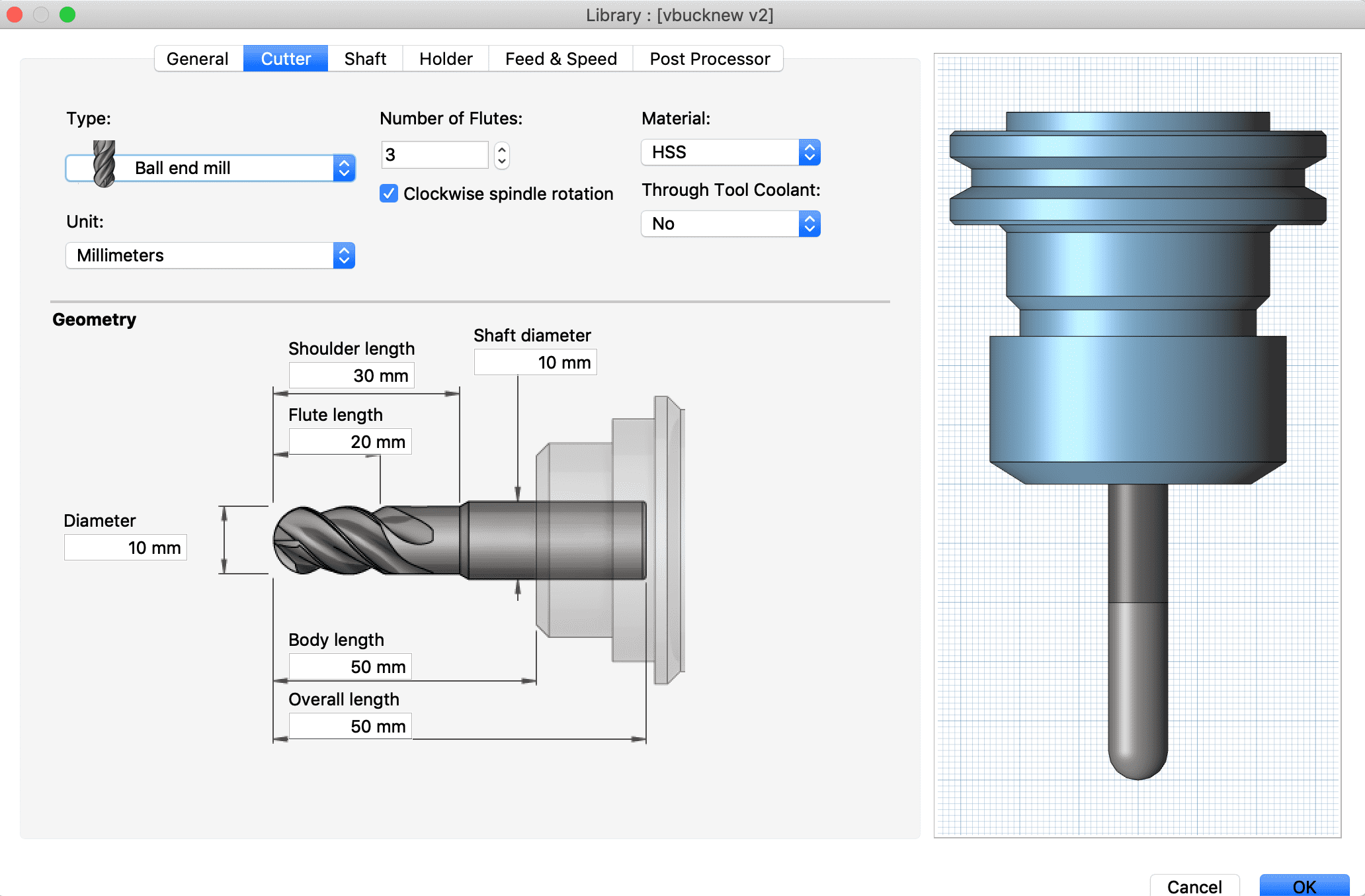 another window opens, in this window we can now set the parameters of our milling tool. These parameters are different with every tool and you have to measure them by your own. Fusion shows you what you have to measure in a simple graphic.