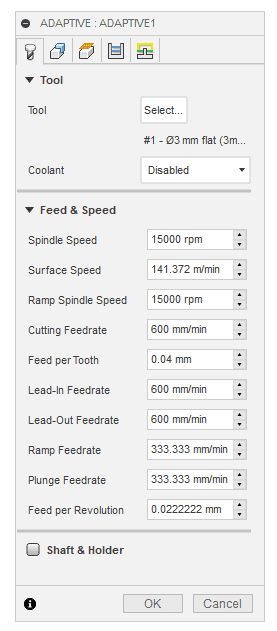 Surface Speed: Speed the tool goes over the surface with, this parameter I didn't changed