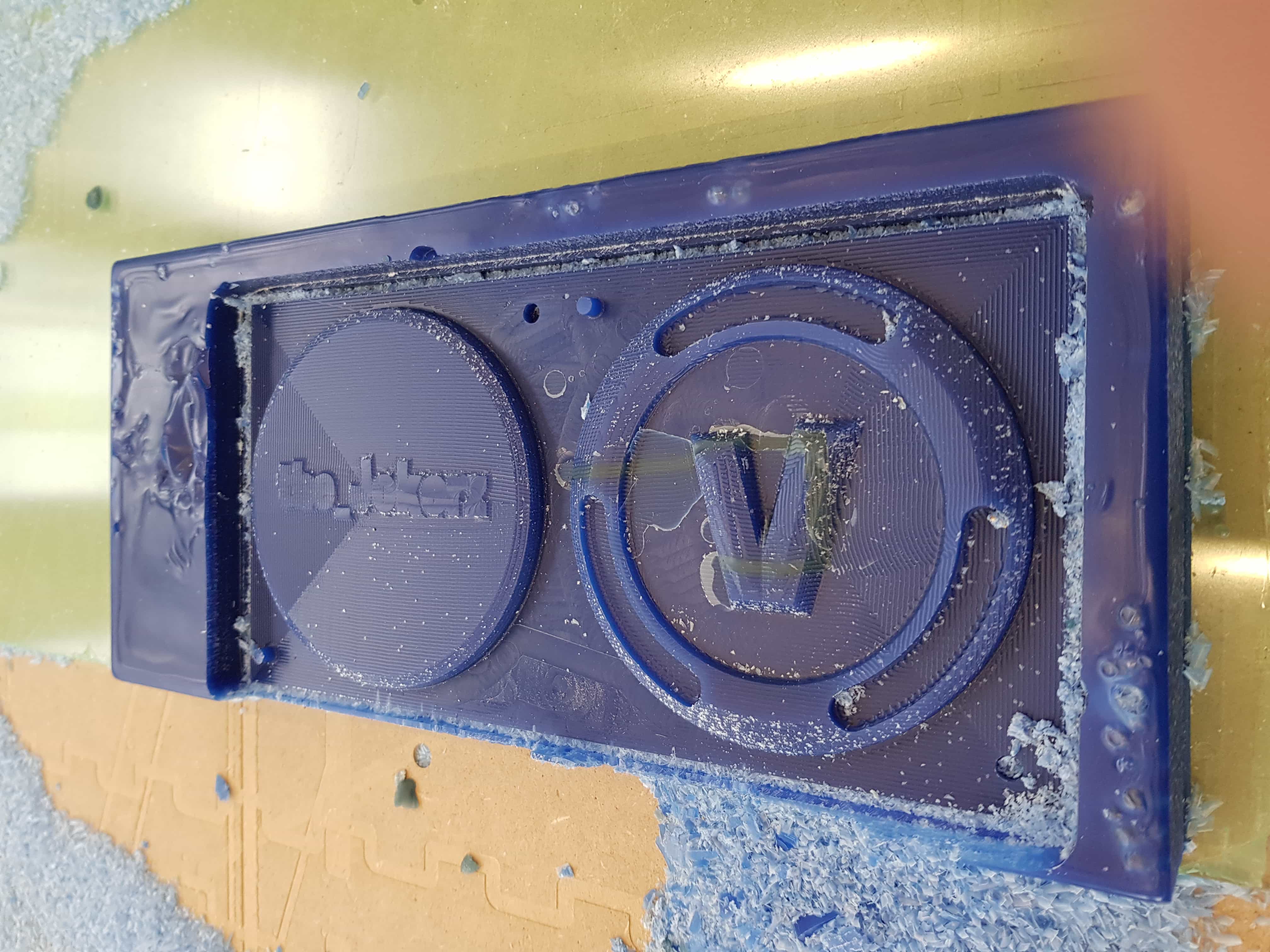 The machine works his way through the material, but attention no machine is perfect stay in front of it as long as the job continues to be sure everything goes fine. Safety is the number one priority when using such big machines. Sometimes the machines will have problems, in my case there was a problem the machine had calculated a wrong path and started to destroy my wax mold. Luckily I stopped the machine before it could destroy the whole thing. Because I was working with wax it was quite easy to fix my failure. I simply melted a bit of wax and dropped it on the destroyed parts