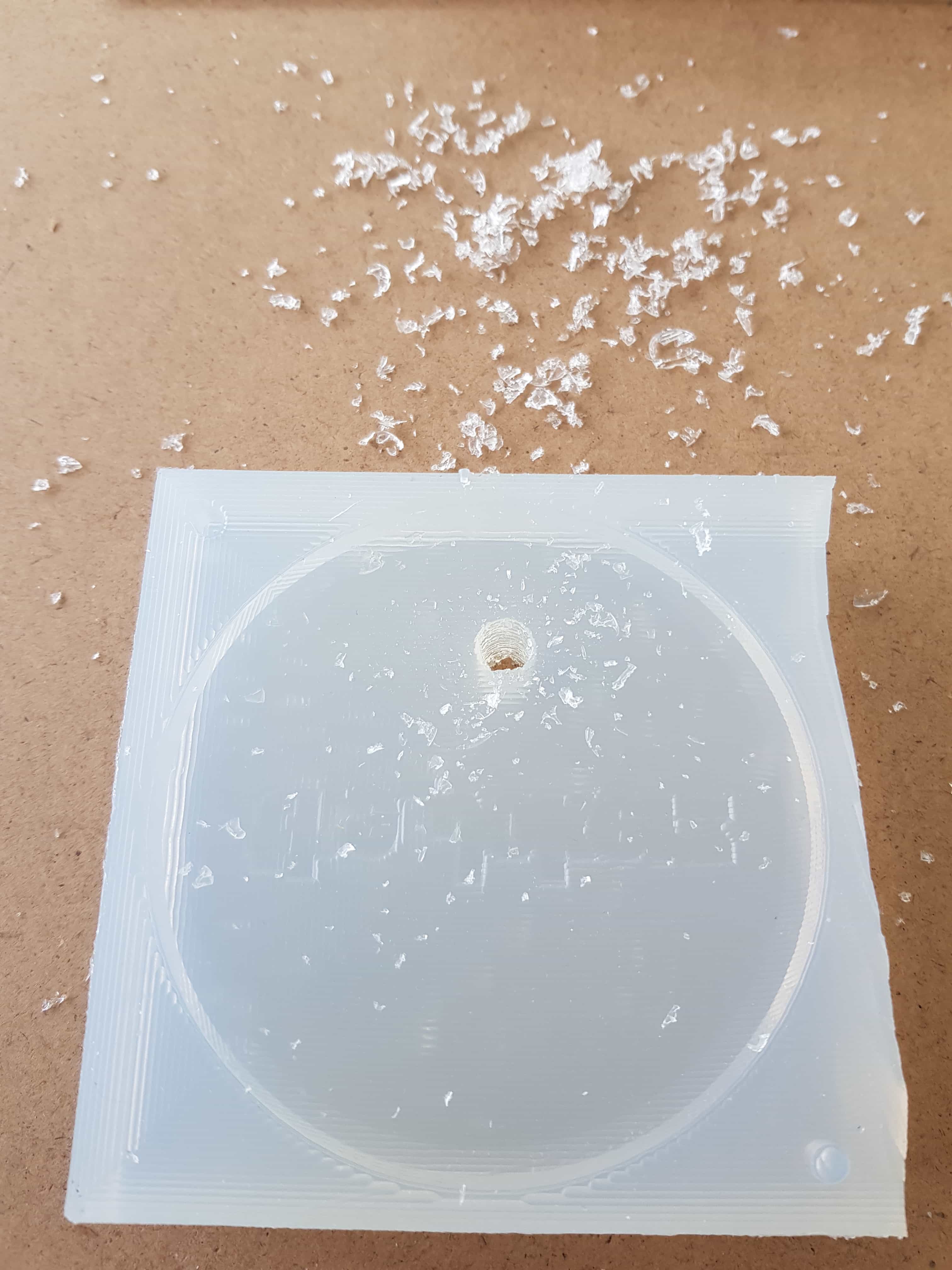 Then I drilled two holes into one side of the mold, one for filling the resin in it and the other one for releasing the air created within the filling process.