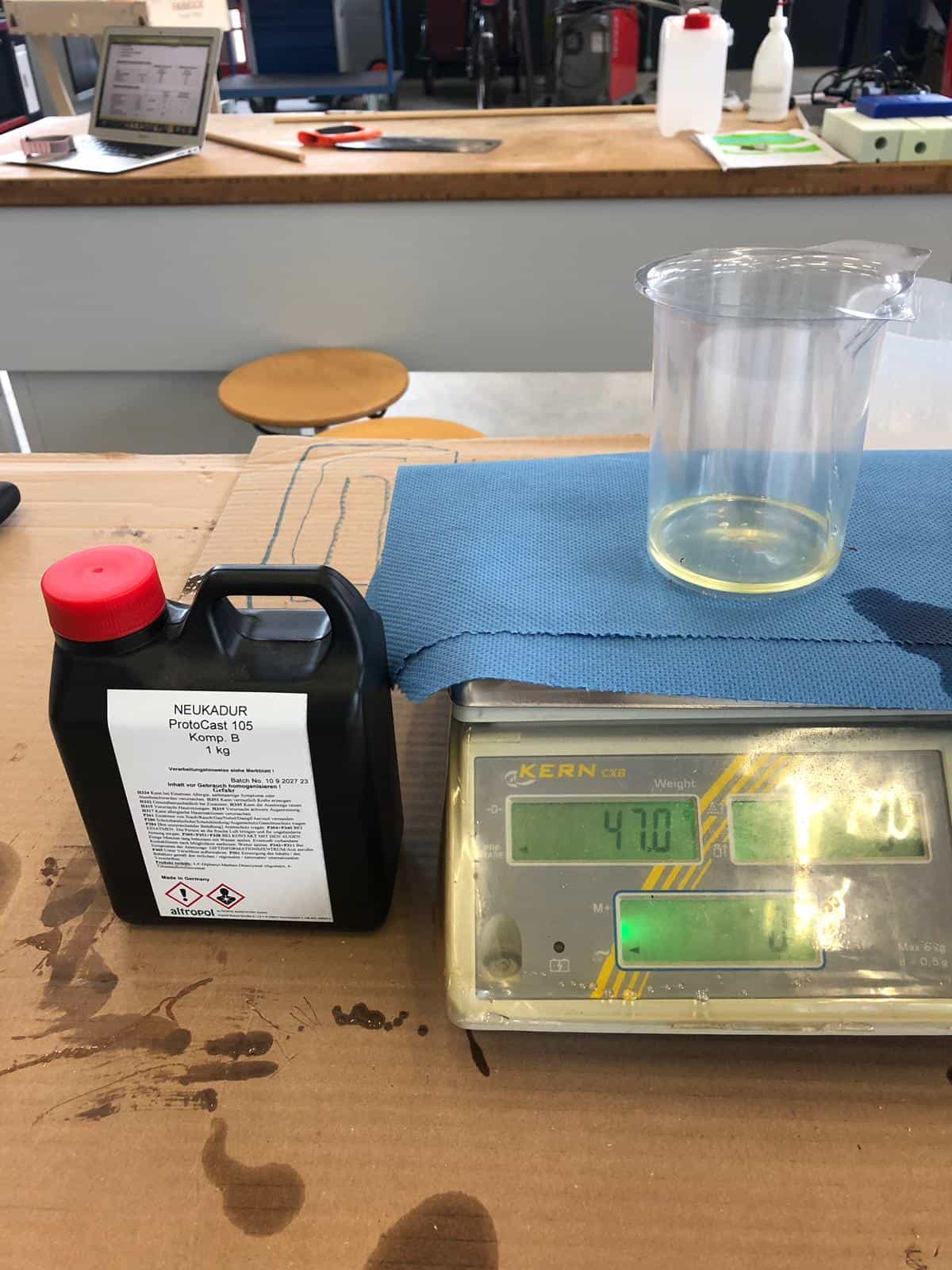 I casted my created mold using NEUKADUR ProtoCast105 from the company altropol. The resin comes with two components the component a and b.