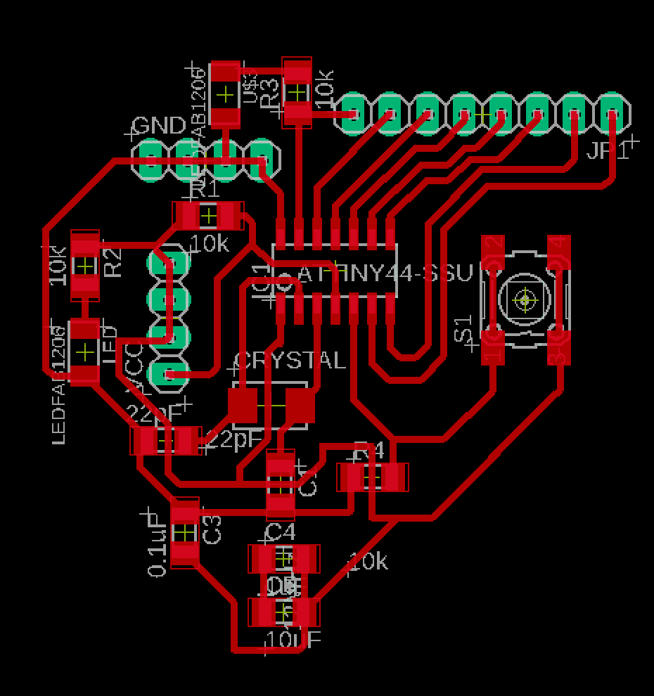 For this weeks assignment I used my atmega 328p based board to send a signal over I2C to my attiny44 based board.