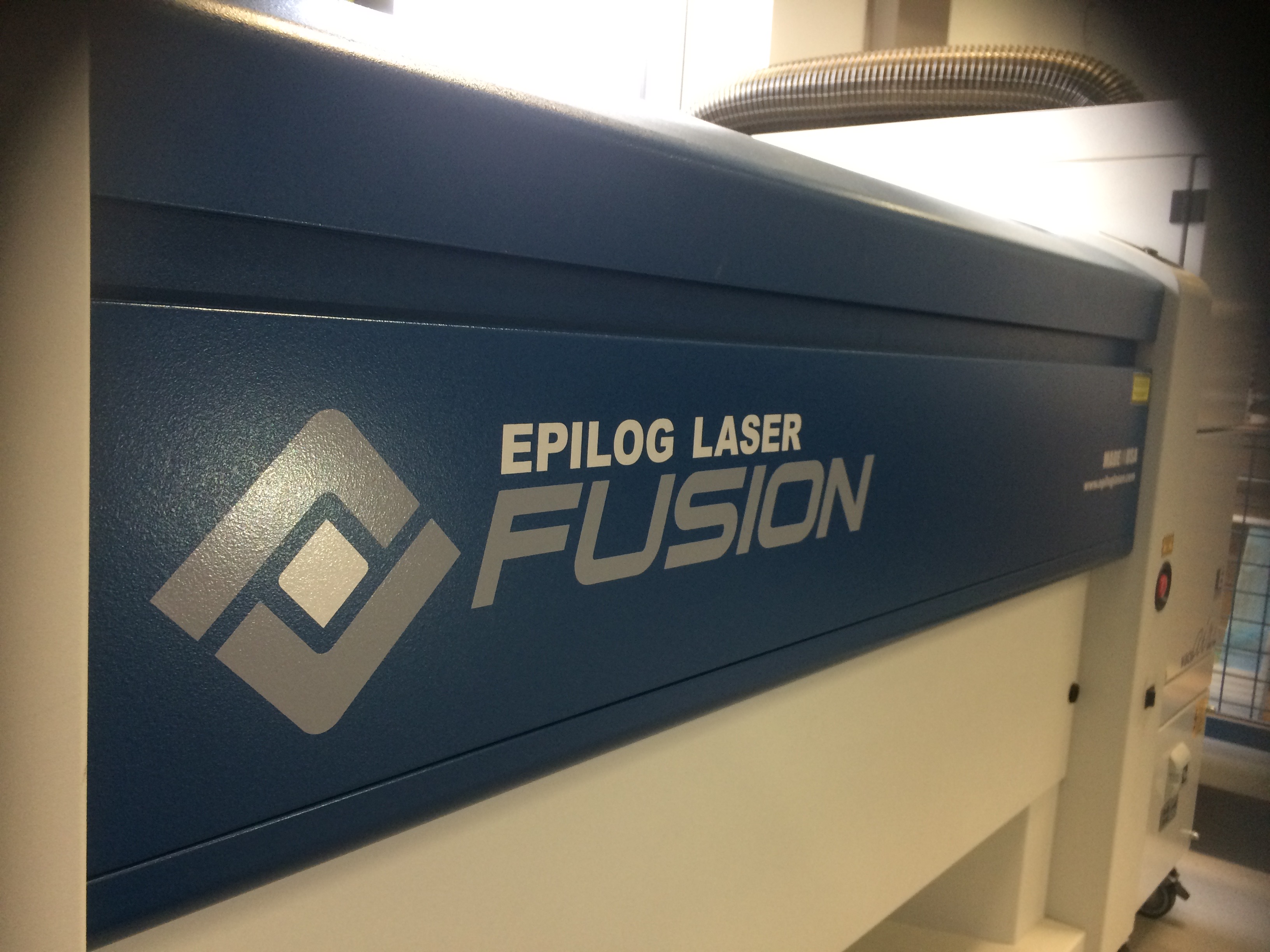 The “big” lasercutter we have in the lab is a 60W Epilog Fusion machine. Here’s an artistic shot from last year showing the front panel.