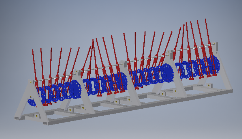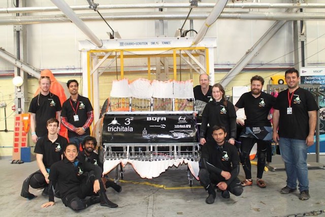 The third version was a human-powered submarine called Trichitala. This machine used crankshafts to drive fin rods linked with a stretchy skin like Gymnobot. To avoid excessive loads through the crankshafts, power was provided through parallel driveshafts individually to four crankshaft segments. The length of the finrods was adjusted such that the amplitude of oscillation increased from head to tail.