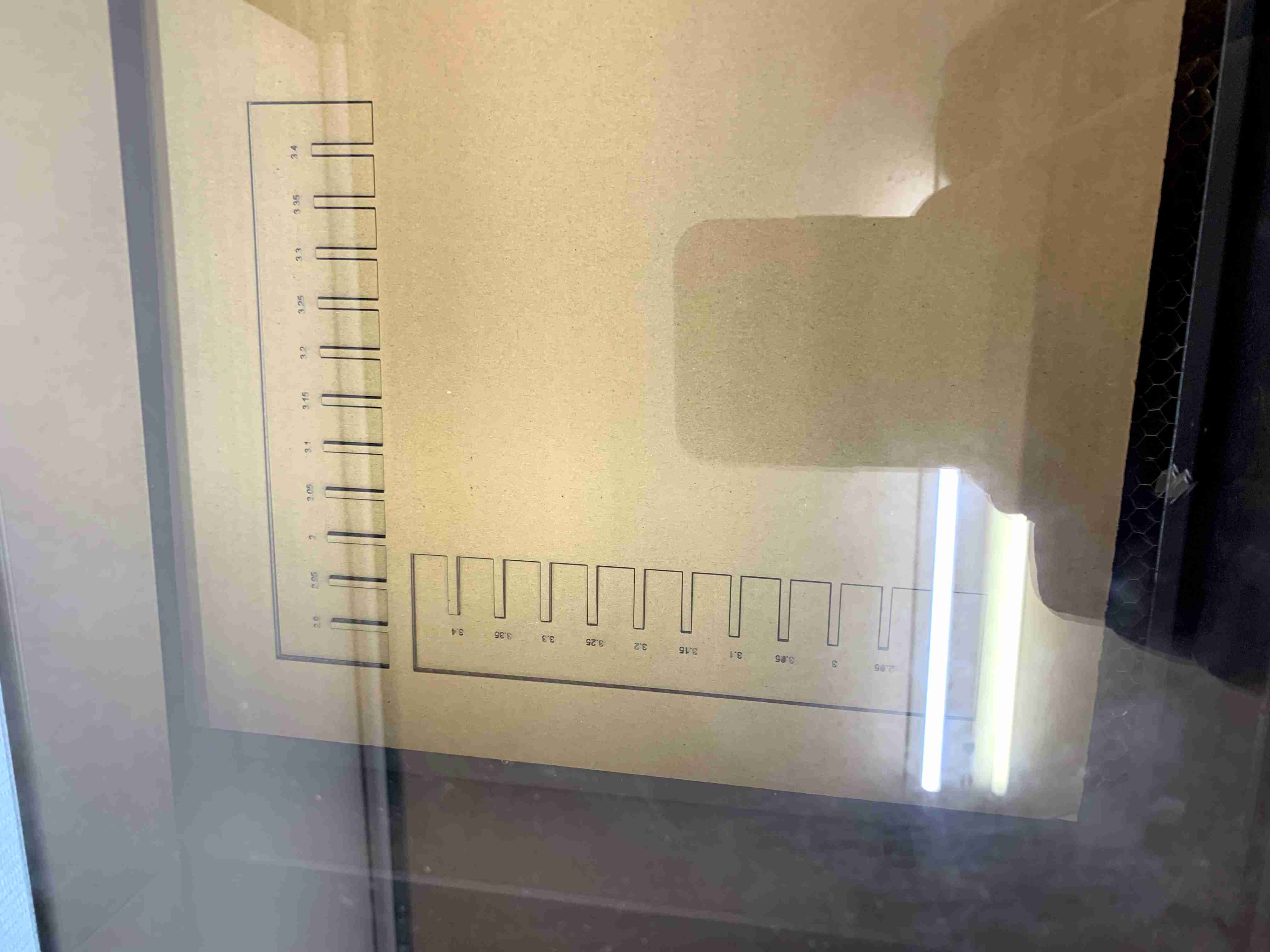 It was a bit too high, so then we set it for 3 with 0.5cm gap. We found that 2.6cm was the best fit. Thickness of the cardbord was 2.9, so we concluded 0.3 is the kerf.