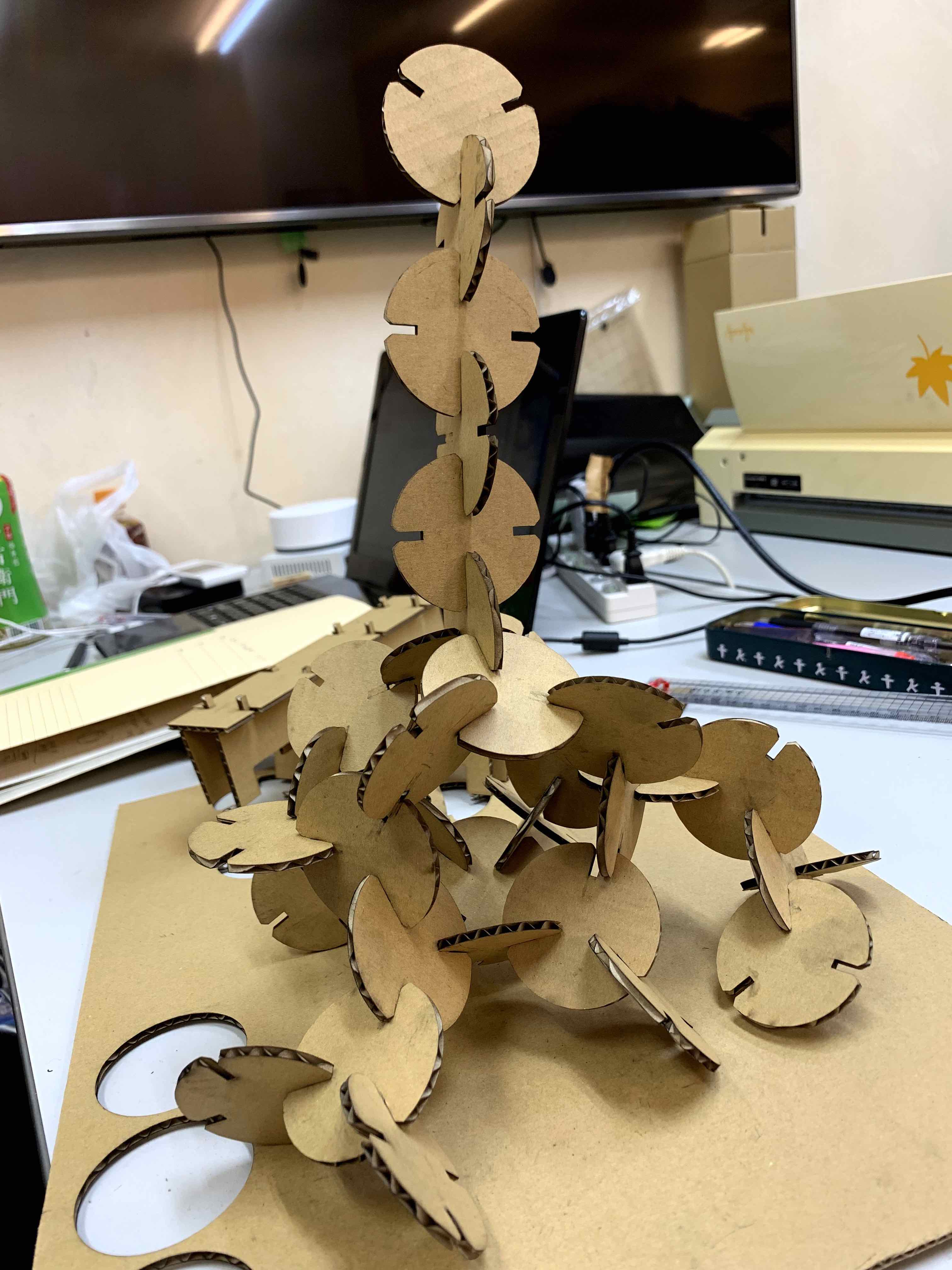I designed round shape parts. There are two types: one has slits by 120 degrees each and the other has slits by 90 degrees each.