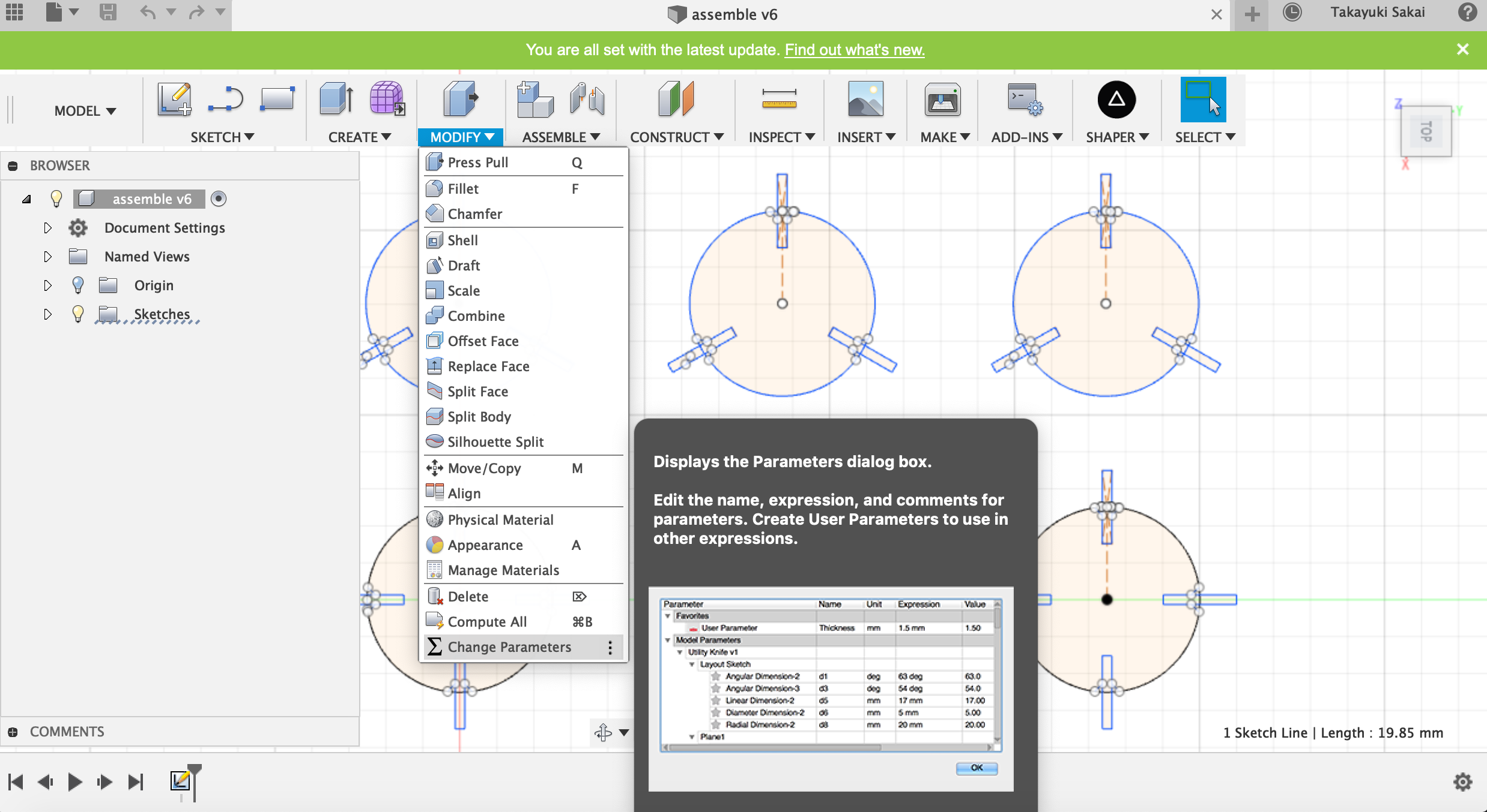 In order to make it paremetric, I use parameter function on Fusion 360. Selected modify > change parameter