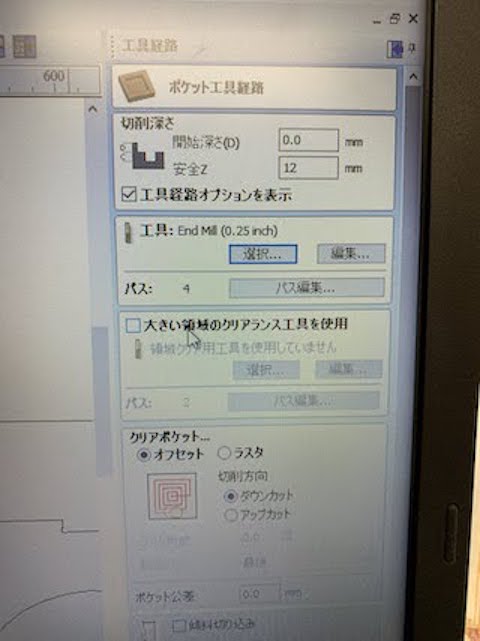 Set depth to 12mm, endmill to 0.25inch, offset to -0.25mm, and to pass 3.